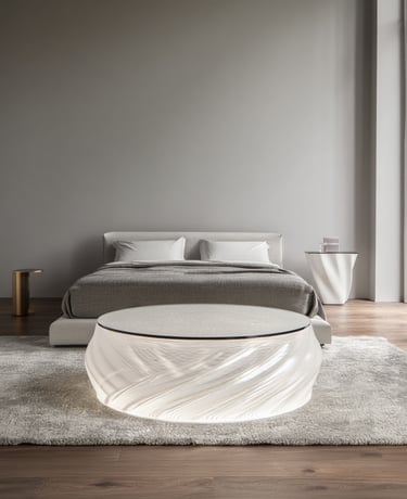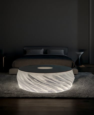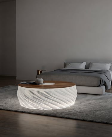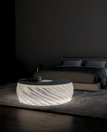 Harmonia Lux, a peça central que transcende a funcionalidade e se torna uma verdadeira declaração de design e serenidade em seu espaço. Com sua iluminação hipnotizante e forma escultural que evoca um suave movimento em espiral, a Harmonia Lux não é apenas uma mesa de centro ou lateral; é uma experiência sensorial. Ela difunde uma luz ambiente acolhedora que transforma qualquer cômodo em um refúgio de paz, convidando ao relaxamento e à contemplação. Cada detalhe foi cuidadosamente pensado para criar um equilíbrio perfeito entre estética moderna e a inovação luminosa, fazendo da Harmonia Lux o complemento ideal para quem busca elevar a atmosfera de seu lar com elegância e um toque de magia."